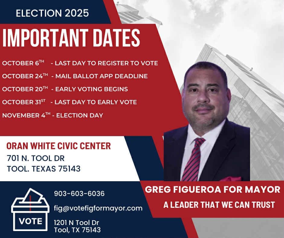 Tool is ready for its next chapter and I am ready to lead us there. With your support, we can clean up our city, create opportunities, and set a new standard of pride for Cedar Creek Lake.